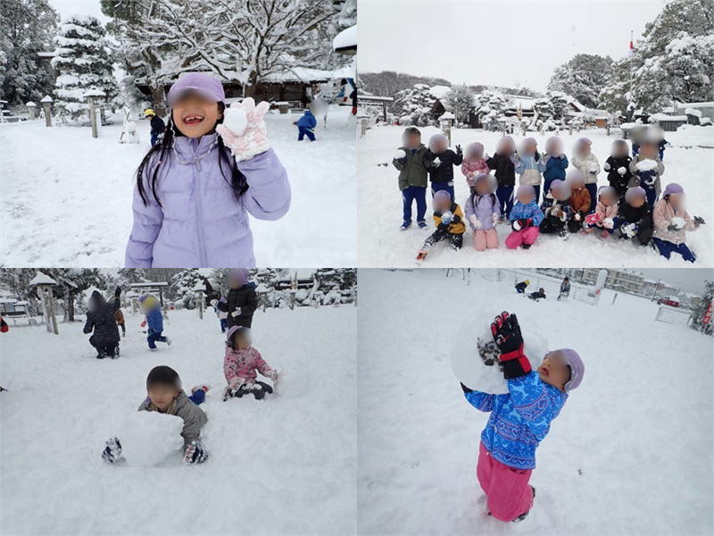 Throughout the year (once a month), children aged 2 to 5 bring their lunch boxes and, depending on their age and the season, go on hikes to parks, pools, mountains, and rivers. When children turn 5, they go on a 2-night outing with just the staff and other children! They carry large backpacks and travel by local trains to reach "Komorebi-no-Sato," located at the foot of Mt. Ibuki in Shiga Prefecture. After returning from the 2-night outing, the 5-year-olds come back with more confidence, a changed expression, and a stronger, more resilient presence!