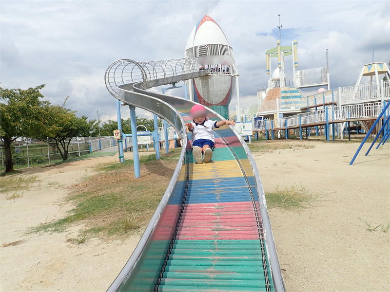 高いすべり台から勢いよく滑って見たり、