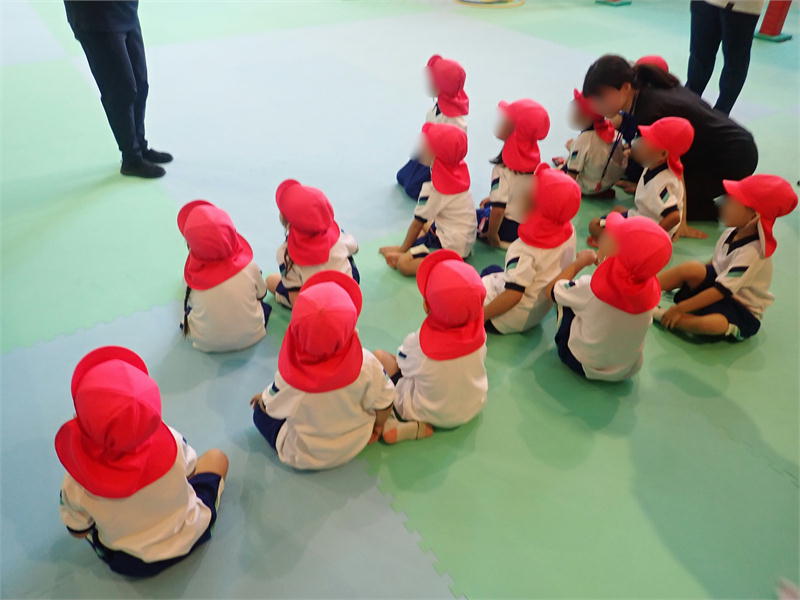 のびのび広場では、他のお友達もいるため守らないといけないルールなど遊び方の説明をしっかり聞きました。