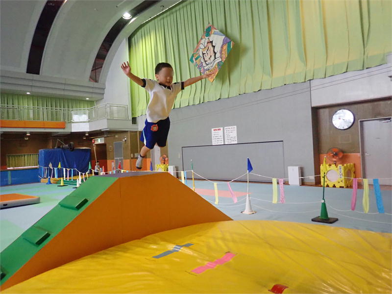 高い所からふかふかのマットへジャンプしてみたり大興奮!